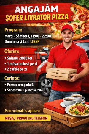 Angajam soferi autobuz pentru efectuarea transporturilor de persoane (conventii); Cerinte obligatorii: - OBLIGATORIU domiciliul stabil in orasul Timisoara; - Avantaj experienta transport persoane; - Permis auto categoria D. Oferta beneficii: - Salarizare atractiva + tichete de masa (30 lei zi); - ...